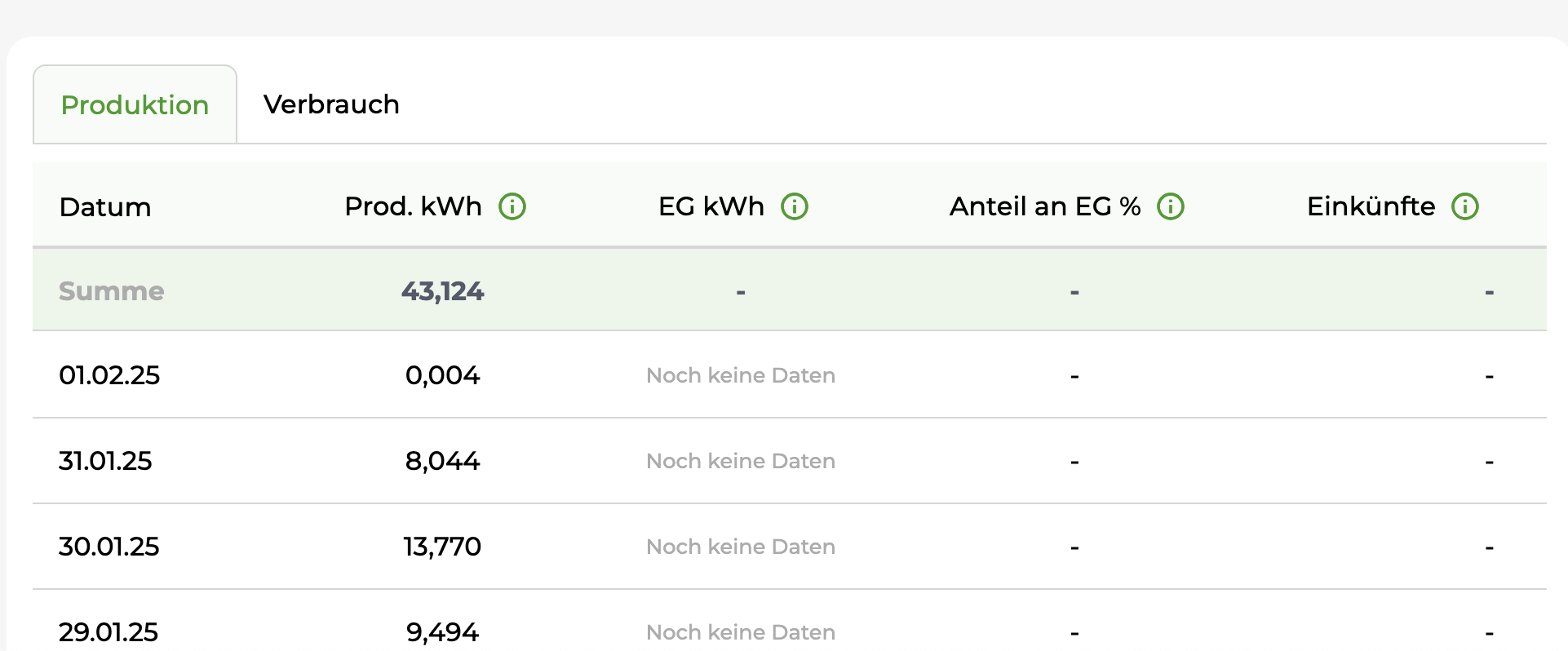 OK danke für die Info, das kann dann ja noch dauern bei mir, hab mir gedacht ich sollte zumindest die details „Anteil an EG %“ sehen bevor ich die Rechnung bekommen, die Verbrauchsdaten sind ja schon sichtbar, nur ebne die Anteile nicht.