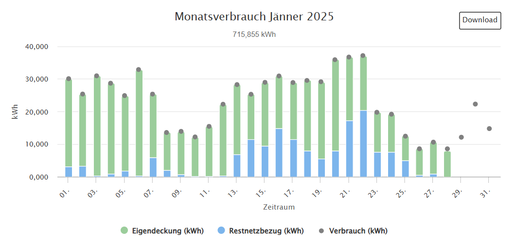 Was mir aufgefallen ist, ab 10.2. sind anscheinend viele Verbraucher dazu gekommen, denn ich bekomme nur mehr rund 50% (oder etwas weniger) Strom aus der BEG, während ich mit der PV fast alles einliefern kann.