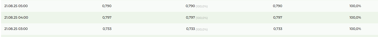 Wenn man sich die 15-Minuten Werte über die API zieht und etwas aufbereitet, sieht man, das meistens bei den typischen Abend-/Morgenspitzen 100% in die EG gehen. Deshalb - und weil es die Verbrauchsprognose vereinfacht - bleibe ich vorerst dabei direkt vor dem Sonnenaufgang den Akku zu entleeren.