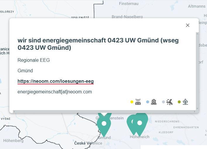 neoom ist jemand anderes. Die EEG der EG-Austria findest du unter Energiegemeinschaften in der EG Austria. Dort ist eine entsprechende Landkarte, bzw. Auflistung.