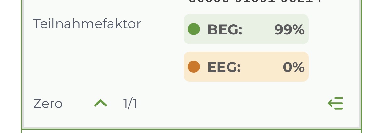 du kannst dir jegliche Teilnahmefaktoren aber auch manuell einstellen - mit allen Vor- und Nachteilen. ich persönlich hab die dynamische Einstellung gelassen, weil ich drauf vertraue, dass jemand der ALLE Daten hat das besser machen wird, als ich “aus dem Bauch heraus” –> und möglichst hohe Unabhängigkeit vom Reststrombezieher find ich wichtiger, als paar kwh zero auf und ab. Das “Problem” betrifft mich ausserdem für den Zero in Wien noch nicht, weils da noch keine EEG gibt. somit ist definitiv die BEG Einspeisung in Pressbaum limitierend und da hab ich zur Zeit (Nov, Dez, Jän) eh kaum Überschuss, wegen Batterie.