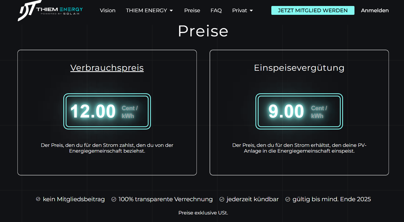 Selbstverständnis/Angebot: „100 % nachhaltiger Strom, Jeder kann Mitglied werden – auch ohne PV, keine Bindung/Mitgliedsbeiträge“ (Marketing-Claims).