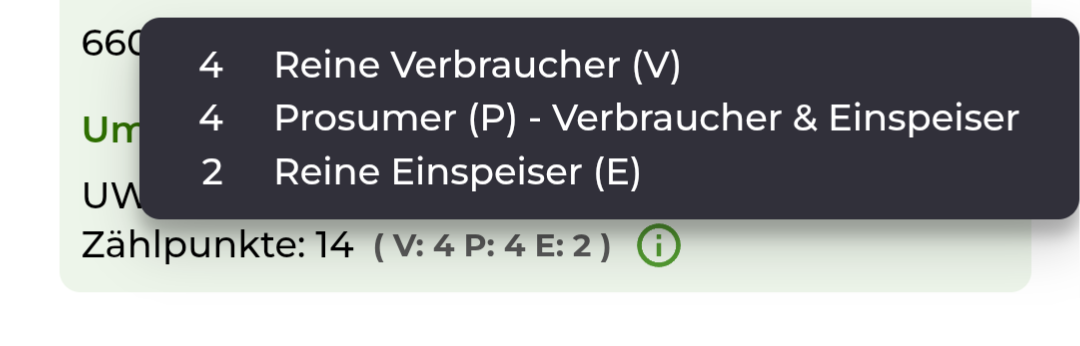 Für größere Energiegemeinschaften macht es aus meiner Sicht eher Sinn sich über eine Grafik und vielleicht einen Empfehlungstext einen guten Hinweis zur Weiterentwicklung der Energiegemeinschaft zu geben.